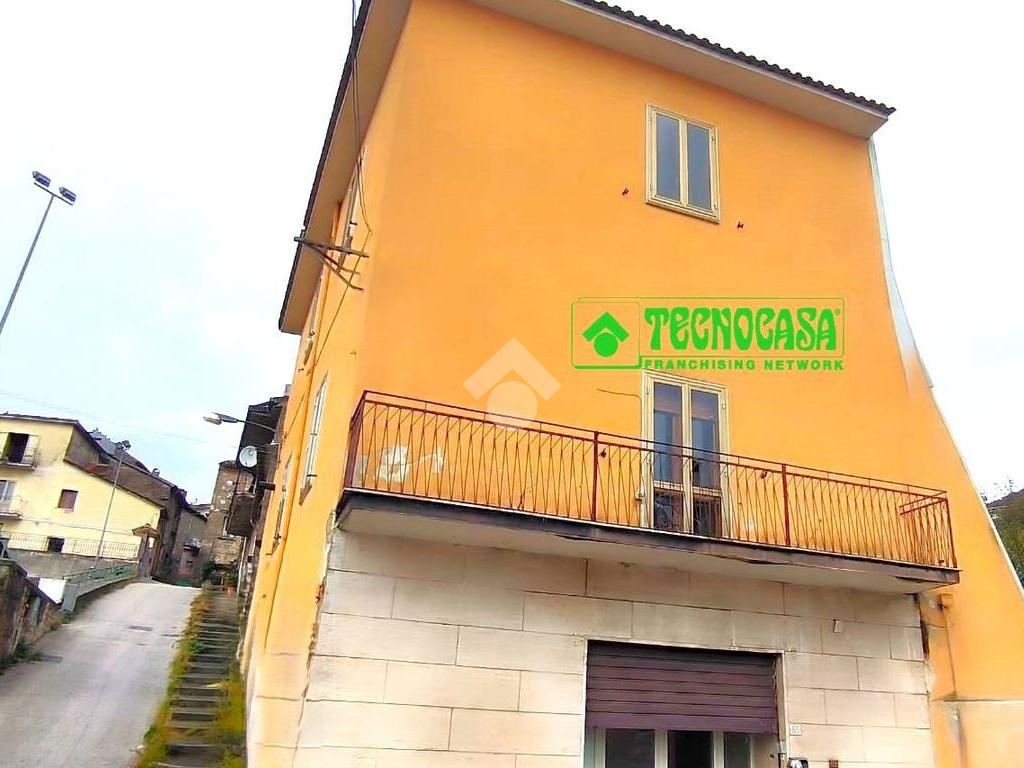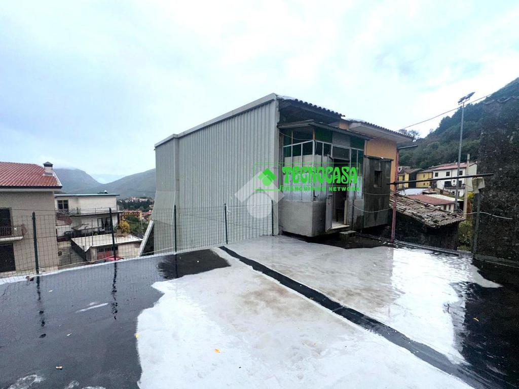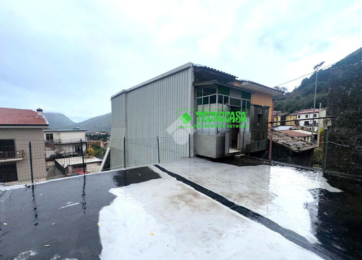Monteforte Irpino palazzina posta su strada principale del paese suddivisa in due unità abitative composta da: due locali al piano terra, scala di accesso in muratura che conduce al piano primo ove troviamo una tavernetta/salone con camino e forno, tre camere, due bagni e balcone; piano secondo suddiviso in cucina soggiorno, 2 camere, bagno e terrazzo con piccolo giardino.